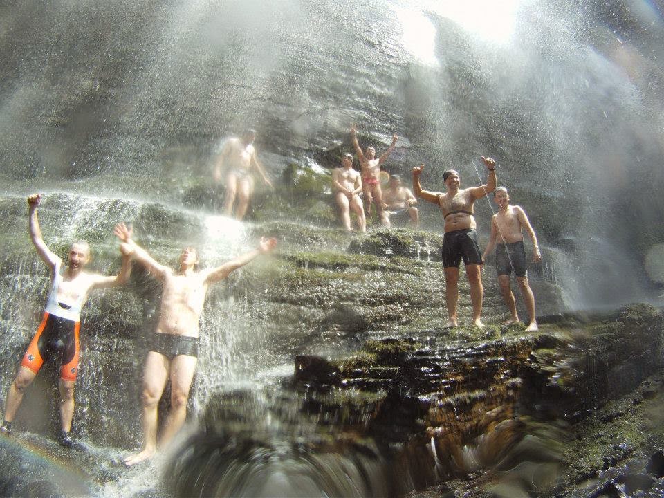 Mais 14 km e chegamos no Mlot (110 m) e São Sebastião (126 m), deixamos as magrelas por lá, e seguimos a trilha rumo a cachoeira. O Bill ficou lá por cima fazendo um tour nos mirantes e na gruta. A trilha é sempre desafiadora, e necessita de um esforço um pouco maior pra conquistar o banho na cachoeira.